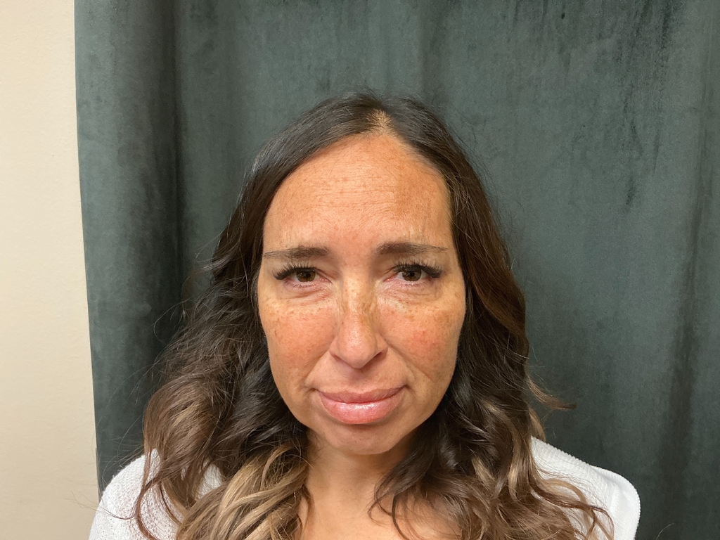 Before and after botox treatment. We also treated this patient's bunny lines in her nose- amazing results!